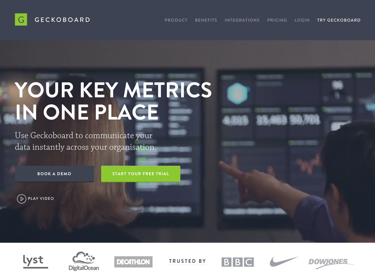Geckoboard's current website Go to www.geckoboard.com to see it live |